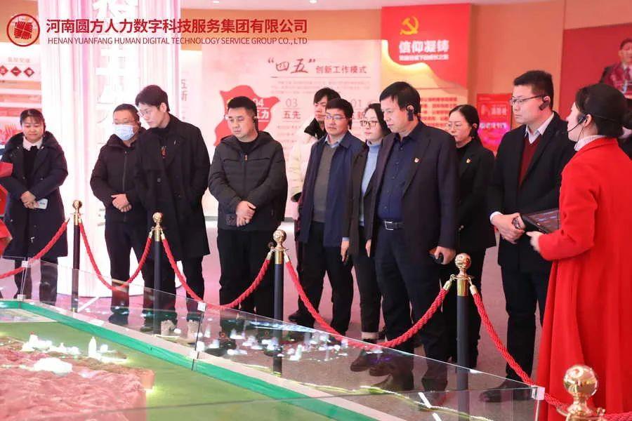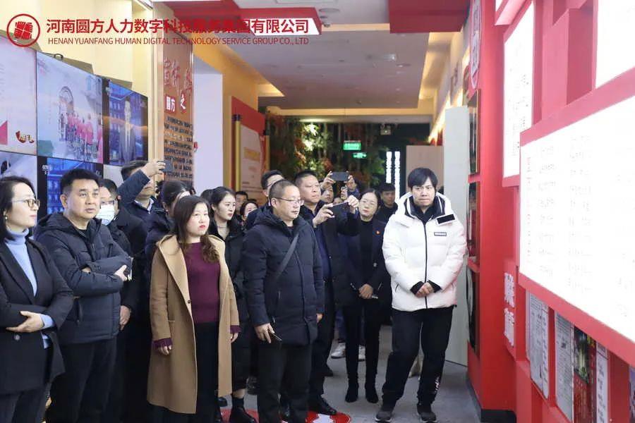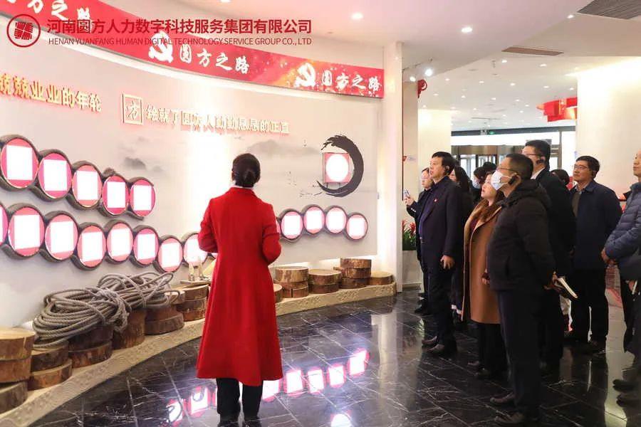 河南省數字經(jīng)濟產(chǎn)業(yè)協(xié)會(huì )會(huì )長(cháng)姚紅超,河南省數字經(jīng)濟產(chǎn)業(yè)協(xié)會(huì )常務(wù)副秘書(shū)長(cháng)李蕊等走進(jìn)圓方黨建展館和圓方二十大精神宣教館參觀(guān)。圓方集團黨委書(shū)記、總裁薛榮,圓方人力集團企服公司營(yíng)銷(xiāo)副總邵梅杰,圓方人力集團部門(mén)經(jīng)理李文博、項目經(jīng)理王樂(lè )等熱情接待了到訪(fǎng)來(lái)賓。