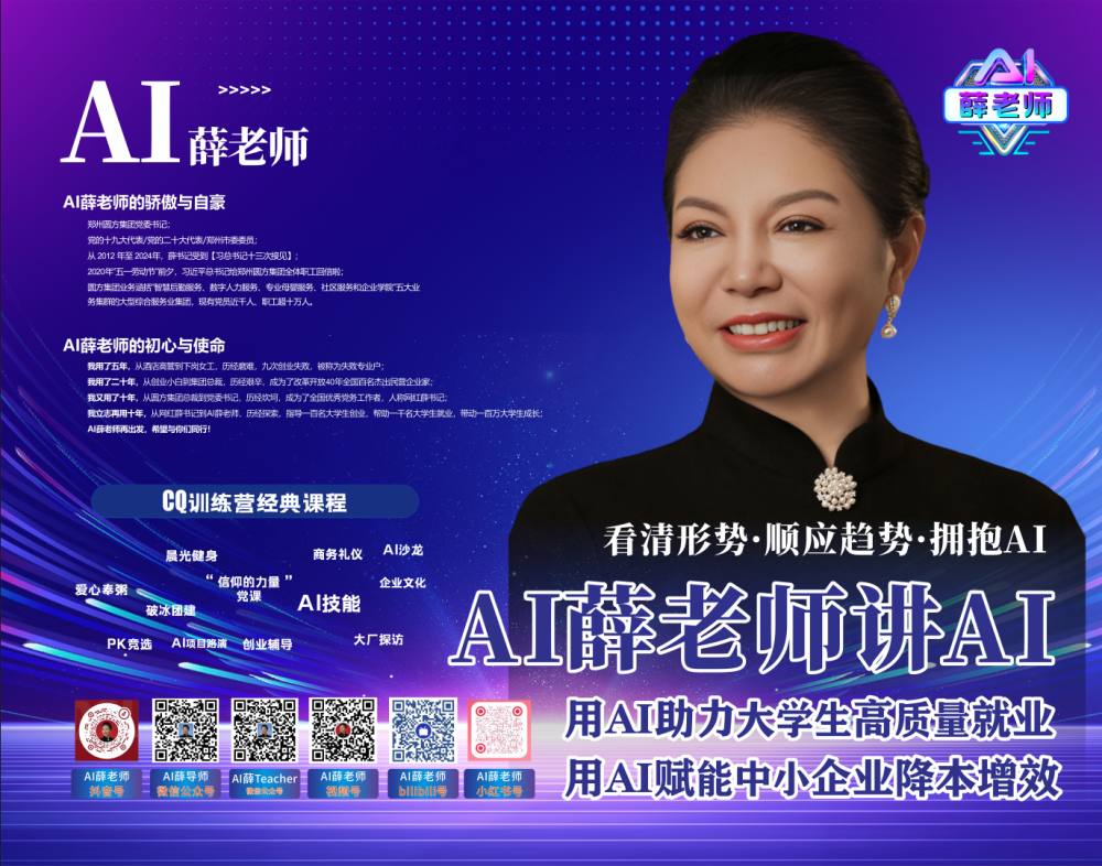 “AI薛老師”是圓方人力原創(chuàng )打造,以講授A(yíng)IGC相關(guān)課程、普及AI工具及其他人工智能相關(guān)職業(yè)技能助力當代大學(xué)生就業(yè)的內容輸出自媒體?!癆I薛老師”采用線(xiàn)上線(xiàn)下聯(lián)動(dòng)的方式,帶領(lǐng)大學(xué)生學(xué)員走進(jìn)各大科技公司,交流學(xué)習AI技術(shù)。了解AI技術(shù)最前沿動(dòng)向,以提高當代大學(xué)生群體職業(yè)技能水平和崗位競爭力,助力學(xué)員們實(shí)現就業(yè)夢(mèng)想。成立至今以幫助40名大學(xué)生掌握AIGC技術(shù),實(shí)現高質(zhì)量精準就業(yè)。本次展會(huì )期間,“AI薛老師”團隊主創(chuàng ),鄭州圓方集團黨委書(shū)記薛榮女士將蒞臨圓方人力集團E04、E05展臺,為大家帶來(lái)更多AIGC技術(shù)相關(guān)的精彩內容。
