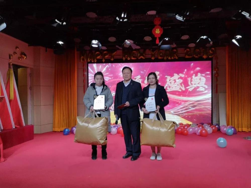 集團和公司領(lǐng)導為榮獲先進(jìn)的公司員工頒發(fā)獎牌和獎品。